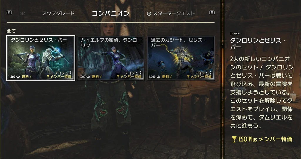 ゲーム中のESO Storeから購入することでコンパニオンクエストが解放されます。なお、ESO Plusに加入している場合は無料で解放できます。クエストをクリアすることでコンパニオンとして使用することができるようになります。