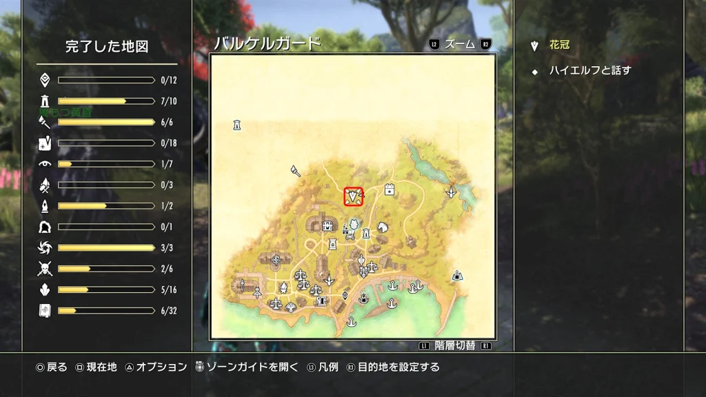 マップを最大まで縮小させるとタムリエル全土のマップに切り替わるので、