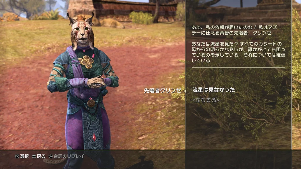 付近にいる先唱者クリンゼからクエスト「月光の影」を受注することができます。