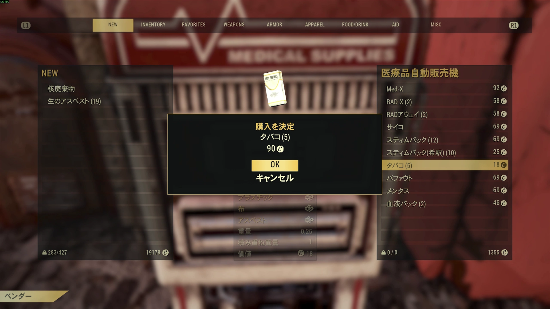 フォールアウト76でジャンクアイテムの「タバコ」を一度にたくさん入手できる場所を紹介します。