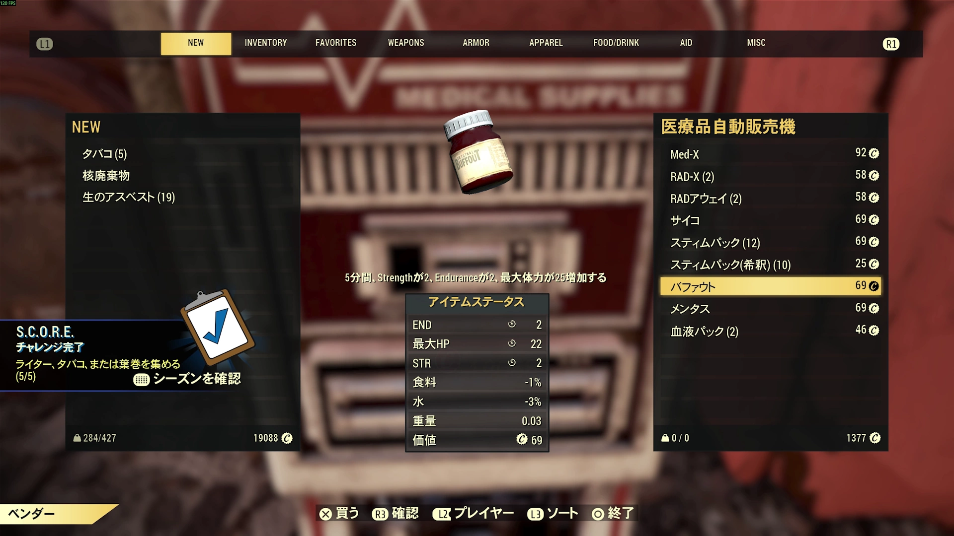 ファストトラベル地点からすぐの場所ですので、SCOREチャレンジ等で手早くタバコを入手したい時に最適です。