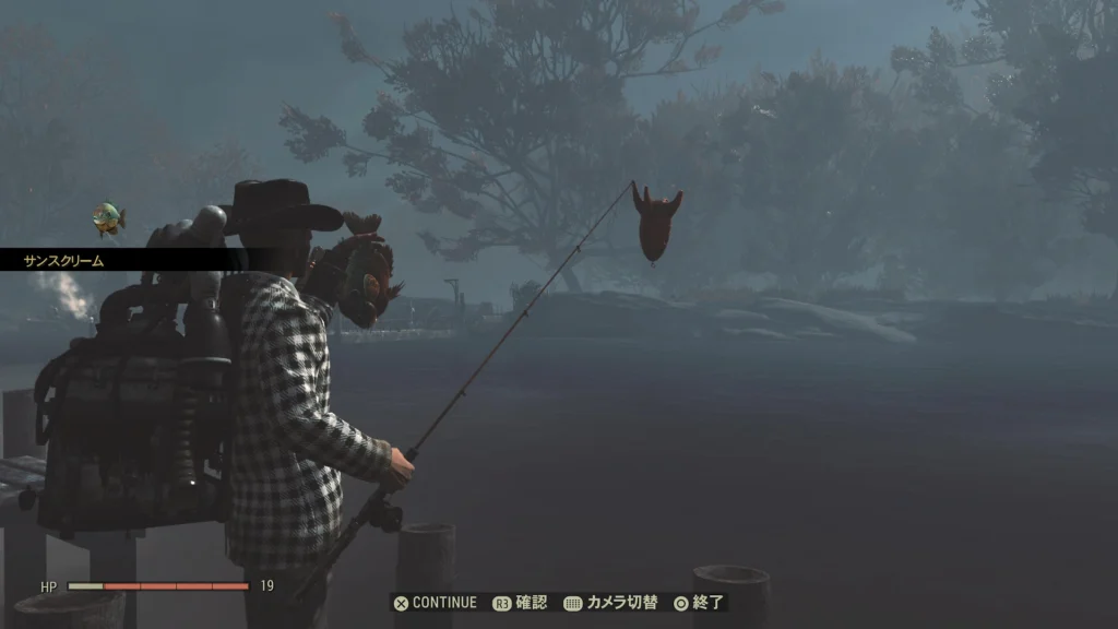 実際に筆者はこの場所にCAMPを設置し、天候装置で天気を「核」にした上で釣りを行った結果、沼地地帯の魚4種類をコンプリートすることができています。