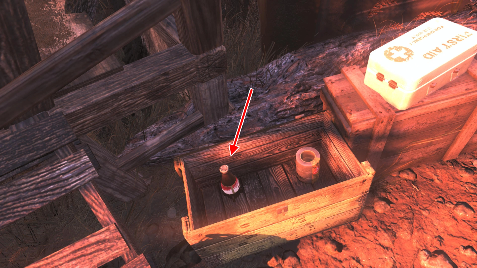 この場所の画像の位置にある道具箱の中にヌカ・コーラ・クランベリーが1個配置されています。